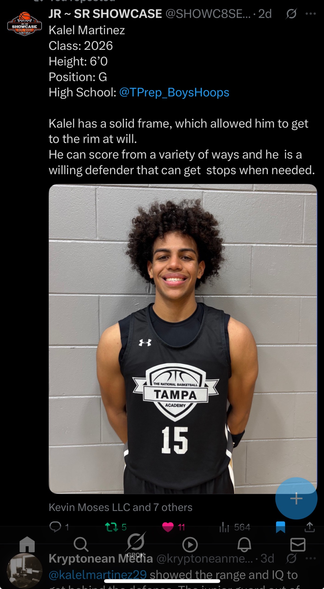 High-IQ, pass-first guard known for court vision, defensive anticipation, and efficiency. A true floor general with consistent perimeter shooting, who controls pace, creates for teammates, and values possession basketball as well as in transition. Final AAU Averages (TNBA Tampa) 14.7 PPG, 7 RPG, 7 APG, 3 SPG while shooting 67% FG, 36.8% 3PT, 87% FT. Impacts the game without dominating the ball and thrives in structured offensive systems. Strong student-athlete with a 4.19 weighted GPA (3.82), National Honor Society, and Vice President of Kappa League. Coachable, disciplined, and competitive β seeking a program built on accountability and team success.